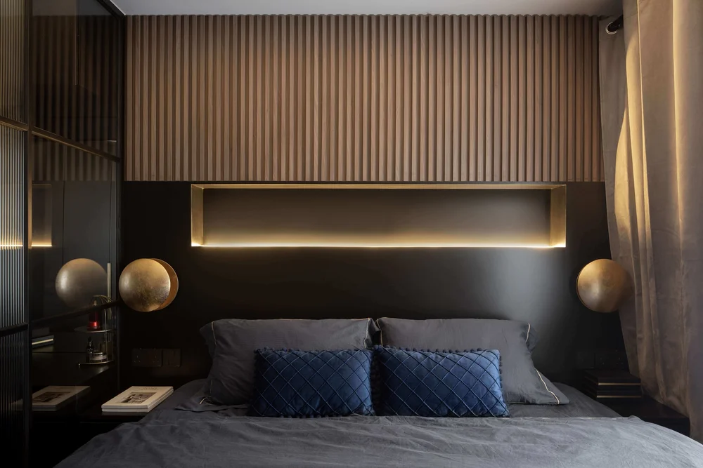 In most HDB flats, limited space is a common concern. However, strategic planning can turn these challenges into opportunities. Incorporating a bedside table can significantly enhance both functionality and aesthetics, providing essential storage without occupying much floor space. According to Swiss Interior, focusing on platform beds is an effective solution to maximize floor space while incorporating additional storage. “Platform beds provide both functionality and a minimalist aesthetic, making them ideal for HDB master bedrooms,” says Karen Tan, a professional interior designer from Swiss Interior. Pair this with recessed shelves and floating shelves to create storage spaces that keep the room clutter-free without sacrificing design.